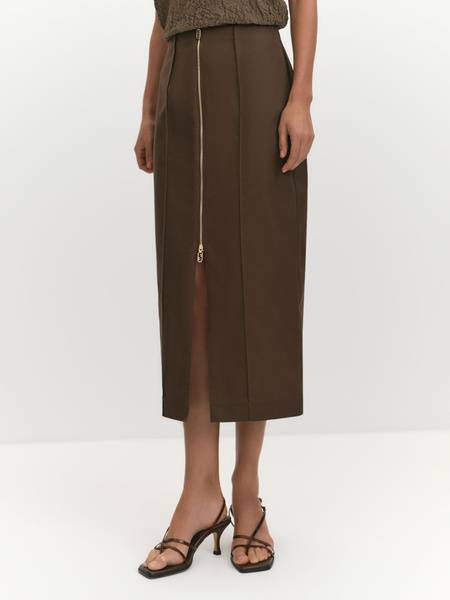 The ELIS skirt is a stylish and versatile addition to your wardrobe. Crafted from a luxurious blend of 60% cotton and 40% viscose, this A-line skirt boasts a flattering high waist and a center zip closure. Its deep brown color makes it perfect for spring and summer events, casual walks, or even the office.