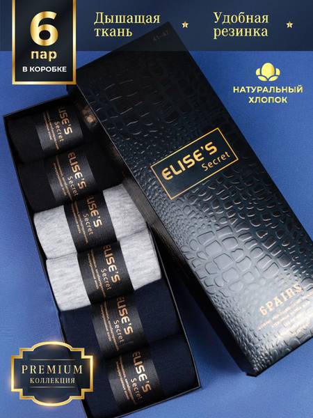 Experience ultimate comfort with Elise's Secret 6-pack men's socks. Crafted from premium cotton, these socks are perfect for any season – stay warm in winter and cool in summer. The breathable fabric is gentle on your skin, preventing irritation. Featuring a mix of blue, gray, and black, these versatile socks effortlessly complement any outfit, from casual wear to more formal occasions. The elastic waistband provides a secure, comfortable fit without tightness or slippage. Presented in attractive gift packaging, this 6-pack makes an ideal present for birthdays, holidays, or any special occasion. Surprise your son, husband, father, brother, friend, or colleague with a thoughtful and practical gift that shows you care. These durable, high-quality socks are suitable for everyday wear, athletic activities (running, gym, cycling), work, and more. Give the gift of comfort and style with Elise's Secret men's socks.