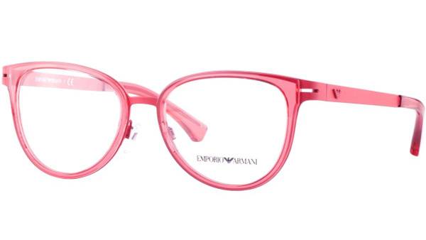 Elevate your style with these Emporio Armani 1032 3101 cat-eye eyeglasses, featuring a trendy coral pink (rose-red) design. This unique frame combines transparent plastic with metal accents for a sophisticated look. Create your perfect pair of prescription glasses with this modern and fashionable frame, ideal for medium-width faces (143mm width). Lightweight and durable, weighing only 23 grams, these glasses offer unparalleled comfort. A democratic design from the master of Italian fashion, Giorgio Armani, these glasses are perfect for young, stylish women. The classic cat-eye shape complements most face shapes. The pink temples are adorned with embossed EA logos.