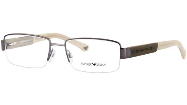 Emporio Armani eyeglasses, Emporio Armani 1001, Emporio Armani 3003, men's eyeglasses, half-rim eyeglasses, gray eyeglasses, steel eyeglasses, khaki eyeglasses, prescription eyeglasses, designer eyeglasses, Italian eyeglasses, Luxottica, Luxottica Tristar, comfortable eyeglasses, lightweight eyeglasses, flex hinges, adjustable eyeglasses, Armani eagle logo, men's fashion eyewear, everyday eyeglasses.