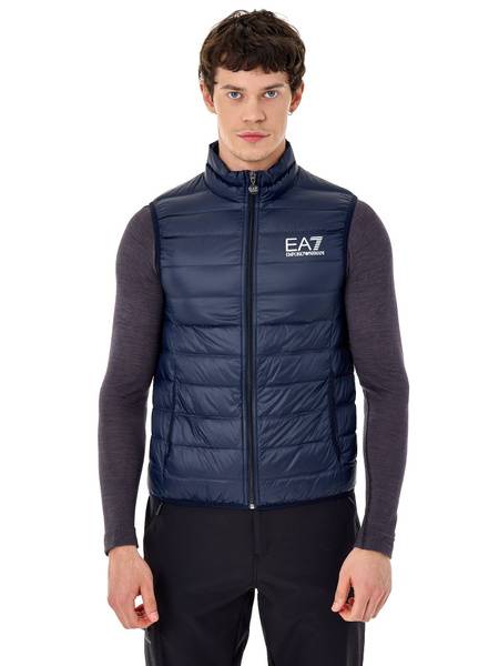 Emporio Armani, EA7, down vest, puffer vest, lightweight vest, packable vest, travel vest, men's vest, women's vest, goose down, warm vest, winter vest, outdoor vest, active vest, stylish vest, comfortable vest, functional vest, polyamide, windproof vest, water-resistant vest, black vest, navy vest