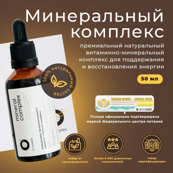 O-Complex is a high-performance vitamin and mineral complex formulated with 100% mineral components and clinoptilolite zeolite for enhanced health, beauty, and improved hair and nail growth. This unique blend features a broad spectrum of vitamins (A, E, C, B vitamins, magnesium, potassium, calcium, iron, etc.), natural plant extracts (Iceland moss, Rhaponticum, propolis), fatty and humic acids, clinoptilolite zeolite, and dihydroquercetin. Easily absorbed, O-Complex combats hair loss, brittle nails, dark circles, dull complexion, and baldness. It improves skin structure and function, slows aging, reduces wrinkles, and increases skin elasticity. Specifically beneficial for city dwellers facing environmental stress, O-Complex stimulates skin renewal, increases collagen production, and accelerates tissue regeneration after injuries and burns. A detailed intake schedule is provided. Officially certified by the Federal Center for Health Nutrition, this dietary supplement strengthens the cardiovascular and nervous systems, boosts metabolism, and improves digestion. Gentle, safe, and effective, O-Complex is your daily ritual for sustained energy, restful sleep, and vibrant well-being. Recommended for smokers and alcohol consumers. Repeat courses as needed. This delicious, easy-to-drink, alcohol-free concentrate from a Russian manufacturer is a perfect gift for yourself and loved ones. One bottle provides a complete course. O-Complex – the ultimate New Year's gift for health and vitality!