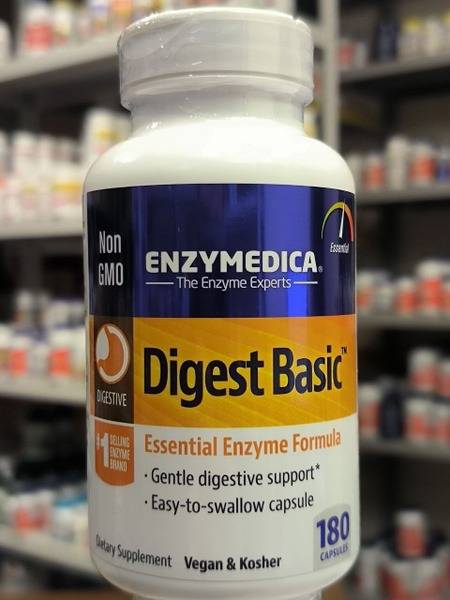 Experience optimal digestion with Enzymedica Digest Basic. This gentle formula helps break down carbs, fats, fiber, and protein, relieving common digestive issues like gas, bloating, indigestion, and discomfort. Support healthy nutrient absorption, boost energy levels, and improve focus with this essential enzyme supplement.