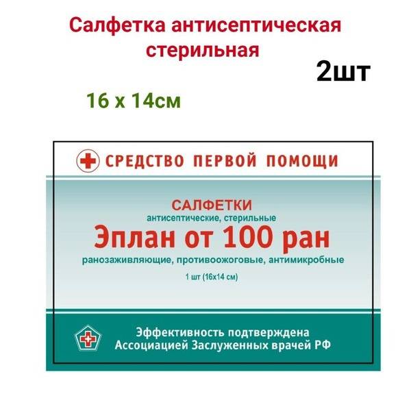 Epllan® 100 Wounds® Sterile Antiseptic Wipes provide first aid for minor injuries. These 16 x 14 cm wipes offer antimicrobial, anti-inflammatory, and wound-healing properties. Ideal for cleaning and treating cuts, scrapes, abrasions, minor burns (I, II, IIIa), and other superficial skin injuries. Non-adhesive to the wound. Two wipes per pack.