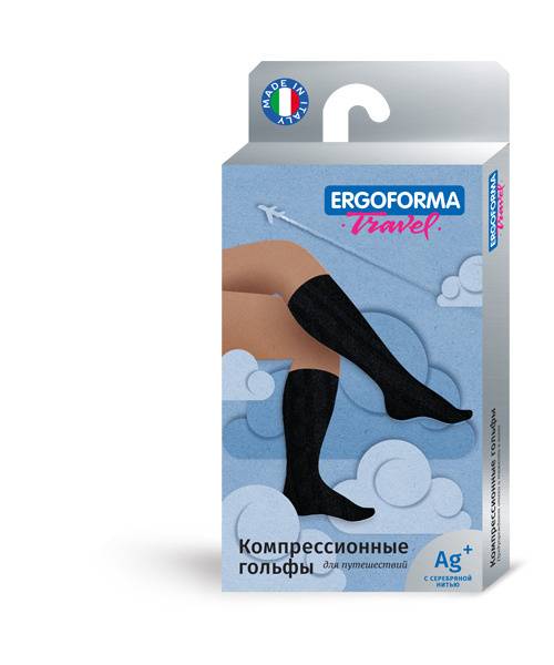 Description: Ergoforma Travel Compression Socks are designed for frequent travelers (airplanes, buses, trains, cars) and anyone spending long periods seated, especially in traffic. They prevent swelling and protect vein walls from strain. Featuring Class 1 compression (18-21 mmHg), these socks are ideal for: frequent air travel; train, bus, and car journeys; early stages of chronic venous insufficiency; excessive lower limb strain; end-of-day leg swelling; and restless legs syndrome.