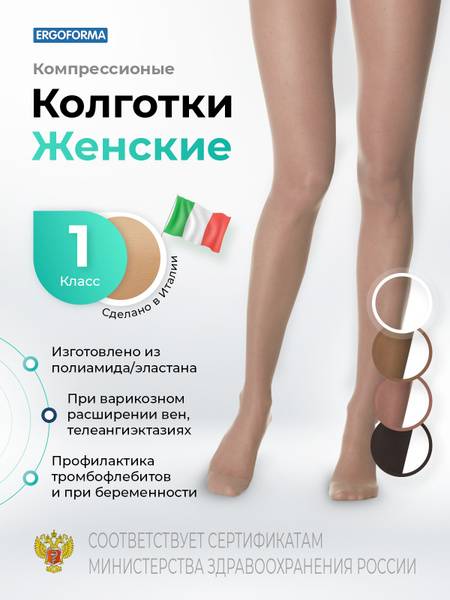 Keywords: Compression stockings, compression socks, varicose veins, varicose vein treatment, edema, DVT prevention, thrombophlebitis, pregnancy stockings, postpartum support, chronic venous insufficiency, leg pain relief, tired legs, heavy legs, Italian made, LYCRA DUPONT SWISSLASTIC, FULGAR, Class 1 compression, medical grade compression stockings, Ergoforma, dark beige stockings, anti-varicose stockings, hypoallergenic stockings, closed toe stockings.