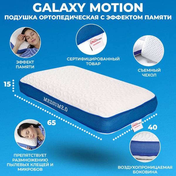 Description: Experience the ultimate sleep comfort with the ERGO FOAM Orthopedic Pillow from the Galaxy Motion collection. This premium pillow, crafted with Visco Elastic "Smart Foam" technology, responds to your body heat and pressure, gently cradling your head and neck for pain relief and superior spinal alignment. Available in three firmness levels – SOFT (green), MEDIUM (blue), and FIRM (orange) – to perfectly match your sleeping style. The 40x65x14cm dimensions comfortably accommodate adults and children alike.