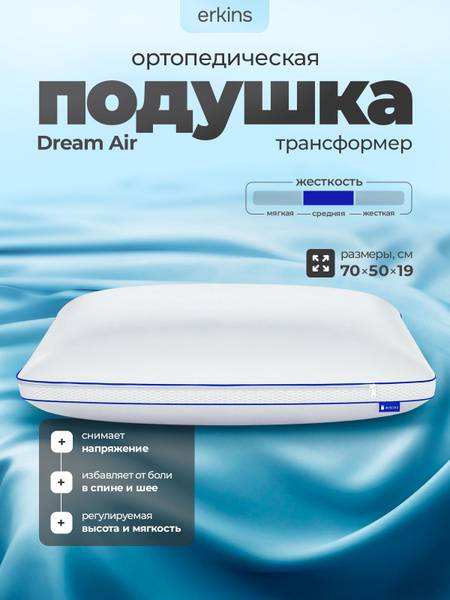 Discover the ERKINS DreamAir Transformer Pillow, an innovative solution engineered for optimal sleep comfort and superior postural support. This anatomical pillow uniquely adapts to your individual needs, allowing you to effortlessly adjust its height and firmness. With customizable heights of 9cm, 12cm, and 19cm, the Erkins DreamAir is an ideal orthopedic pillow for adults and a perfect children's pillow for proper neck and head alignment during sleep.