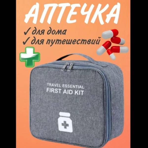 This first-aid kit is a must-have for every home and essential for travel. Our organizer provides the perfect solution for storing medications, pills, and other health essentials. Crafted from water-resistant fabric with soft padding and a lid featuring four convenient pockets for frequently needed items, it's designed for ultimate practicality. The large main compartment includes a carry handle, making it ideal as a car first-aid kit, a travel companion for camping trips and outdoor adventures, or even a diaper bag for new parents.