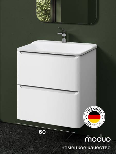 The Essety 60 wall-mounted bathroom vanity is the perfect solution for a stylish and functional bathroom. This 60cm wide vanity boasts a sleek, modern design that complements any bathroom decor, from small spaces to larger bathrooms. Crafted from high-quality, moisture-resistant materials for lasting durability, this German-engineered vanity ensures long-term performance and protection against bathroom humidity. Two spacious drawers with soft-close mechanisms offer ample storage for toiletries and other bathroom essentials, keeping your space organized and clutter-free. Easy installation and wall-mounting make setup a breeze. Experience the perfect blend of style, functionality, and quality with the Essety 60 bathroom vanity.