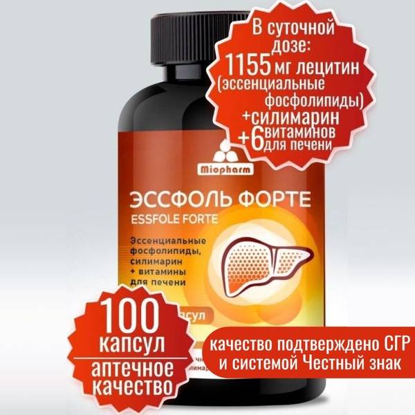 Essfol Forte, Myopharm, liver support, hepatoprotector, lecithin, silymarin, milk thistle, B vitamins, vitamin B12, vitamin E, liver detox, liver cleanse, liver regeneration, liver protection, cirrhosis prevention, hepatitis prevention, fatty liver, liver health supplement, hepatic support, essential phospholipids, antioxidant, anti-inflammatory, Russia, pharmacy