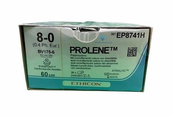 Ethicon, Prolene, suture, surgical suture, non-absorbable suture, monofilament suture, polypropylene suture, blue suture, 8-0 suture, 0.4mm suture, 60cm suture, BV-175 needle, surgical needle, sterile suture, single-use suture, Ethicon LLC, Puerto Rico, USA, surgical supplies, medical supplies, 8/0 suture, surgical thread, wound closure, polypropylene monofilament