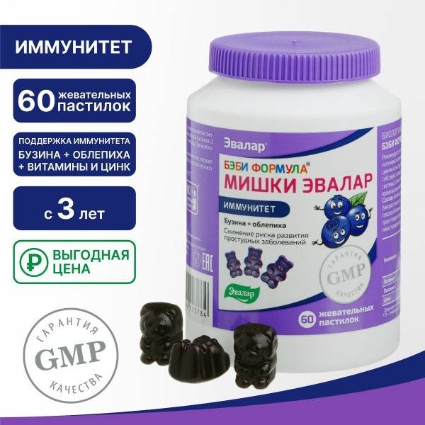 Support your child's immune system with Evalar Baby Formula Immune Support Gummies, delicious bear-shaped vitamins formulated for children aged 3+. These unique gummies combine the power of elderberry and sea buckthorn with essential vitamins like Vitamin C and Zinc, providing potent immune support. Perfect for navigating seasonal changes, adapting to daycare or school, and aiding recovery from illness, Evalar Immune Support Gummies help activate and maintain a strong immune response. Made with natural fruit juices, these delicious, gluten-free and GMO-free gummies are free from artificial colors, flavors, and preservatives. As the first and only children's gummies (3+) featuring elderberry and sea buckthorn, Evalar offers a superior, parent-approved formula for healthy, happy kids. Give your child the gift of robust immunity and a delightful taste experience with Evalar Baby Formula Immune Support Gummies – 60 gummies per pack.