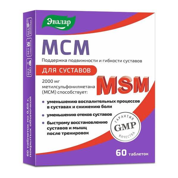 Evalar MSM (methylsulfonylmethane) 60 tablets provides 1000mg of MSM per serving, supporting joint health, reducing inflammation, pain, and stiffness. MSM, a crucial component of connective tissue, improves circulation and cell viability. Supports faster recovery after workouts. Not a medicine. This is a great supplement for those experiencing arthritis pain relief, improving joint mobility, and reducing joint inflammation. Consider this the best MSM supplement for knee pain.