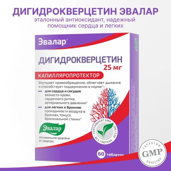 Support healthy blood viscosity and circulation with Evallar Siberian Larch Dihydroquercetin. Each tablet delivers 25mg of dihydroquercetin – 100% of the recommended daily intake. Vascular health is crucial for overall well-being, especially cardiovascular health. Dihydroquercetin protects blood vessel walls, inhibiting lipid peroxidation and supporting metabolic processes to maintain strength, elasticity, and healthy blood flow. Benefits include improved cardiovascular function and mild diuretic effects. Regular use may contribute to improved cardiovascular health and overall wellness. This product is not a medicine. Consult your doctor before use as contraindications may apply. Please note: Packaging design may vary depending on stock availability.