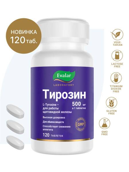 Evalar L-Tyrosine 500mg: 120 Tablets for Energy, Mood, & Focus