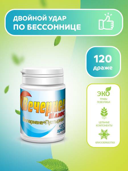 Description: Evening Plus is a natural sleep aid formulated to promote balance and improve sleep quality. These tablets are specifically designed for those seeking restful sleep after a demanding day. Each tablet contains a high dose of valerian root, known for its calming and sleep-inducing properties, helping to relax the body and mind for improved sleep. The formula also includes motherwort extract, which contributes to overall relaxation and promotes better sleep. Experience the benefits of natural ingredients and find harmony and balance in your life. Choose Evening Plus for a peaceful, restorative night's sleep. Prioritize your well-being and discover the difference a natural approach to better sleep can make.