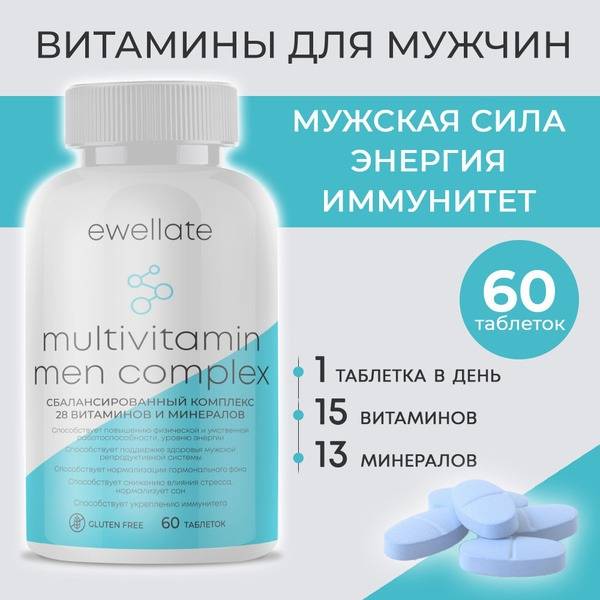 Ewellate: Empowering men to live healthier, stronger lives. Order your supply today! (This is a dietary supplement, not a medication.) Contains Vitamins A, D3, E, C, B1, B2, B3 (PP), B6, B12, K1, Folic Acid, Pantothenic Acid, Biotin, and Minerals: Calcium, Zinc, Iodine, Selenium, Molybdenum, Manganese, Copper, Chromium, Vanadium, and Magnesium.