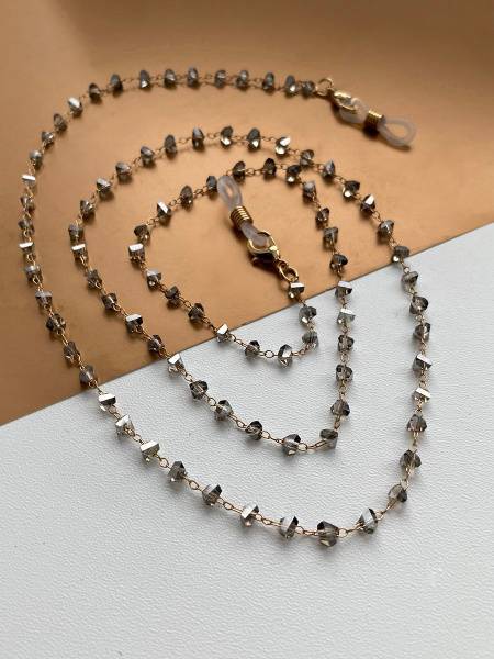 Elevate your eyewear with our exquisite designer eyeglass chains. Available in a variety of colors and styles, these chains feature genuine crystal accents for a touch of luxury. Crafted from high-quality materials, each 75cm chain boasts unique, 3x3mm triangular crystal beads and secure silicone loops and carabiners for easy attachment. Versatile enough to also hold face masks, each chain includes replacement silicone loops and a gift pouch.