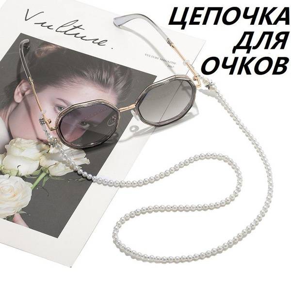 <img src="image2.jpg" alt="Eyeglass chain on model wearing sunglasses">