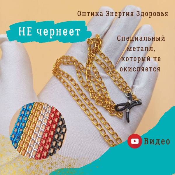 This stylish gold-toned metal eyeglass chain features a chunky knit design and durable construction. Its 68cm length provides comfortable wear, and the secure, opaque black silicone tips ensure a reliable hold. The special coating enhances its longevity and attractive appearance. A perfect gift for birthdays, holidays (Christmas, New Year's, Mother's Day, Father's Day), or any special occasion. Ideal for moms, dads, siblings, grandparents, friends, and colleagues. Explore our wide selection of eyeglass chains – long, short, metal, rubber, various colors, and price points ranging from budget-friendly to premium – at Optika Energiya Zdorovya. Find your perfect chain today!