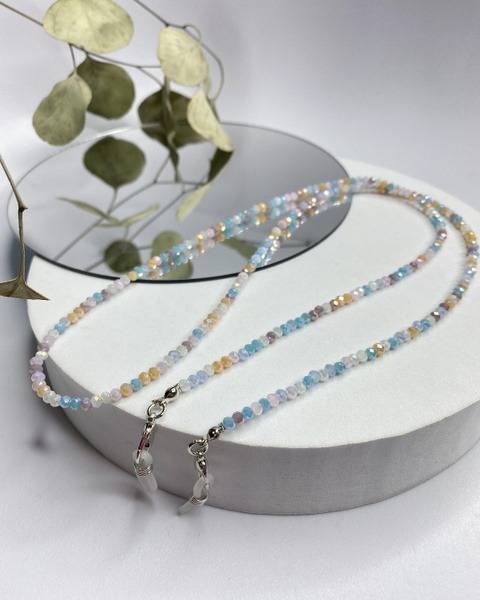 Crafted from high-quality, shimmering beads, this eyeglass chain boasts a luxurious feel and eye-catching design. The 79cm length provides ample comfort and ensures your glasses are always within easy reach. Secure silicone grips gently hold your frames, preventing slippage and ensuring a comfortable fit all day long.