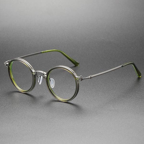 These stylish round eyeglass frames are crafted from pure titanium for exceptional comfort and durability. Perfect for small faces, they boast a retro design inspired by Hong Kong, British, and French vintage styles. Available in black, black gold, and transparent green, these frames are suitable for both men and women. Featuring a full-rim design and aspheric lenses (compatible with prescription lenses), they offer superior visual clarity. Ideal for nearsightedness and blue light protection. These high-quality frames are available for wholesale and export globally, with key markets including Africa, Europe, South America, Southeast Asia, and North America. (SKU: XFS9638)