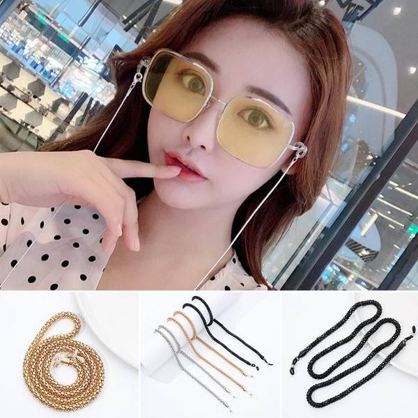 <hr>Elevate your accessory game with our premium metal eyewear chain and face mask holder, 100% brand new and of the highest quality. Choose from elegant gold, modern silver, or classic black to complement your style. Measuring around 70cm, this chain boasts a timeless, fashionable, and minimalist design. It's the ultimate solution to keep your glasses and masks readily accessible, preventing them from falling or getting lost. Experience the convenience of freeing your hands and relieving ear strain, especially when dining out or running errands. This stylish lanyard securely holds your face covering, keeping it off surfaces and readily available. An essential accessory for your glasses and masks. (Manual measurement may result in 1-2% difference.)