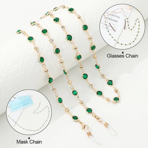 Enhance your eyewear with this 100% brand new, high-quality eyeglass chain. Made from durable metal, this fashionable and vintage-inspired glasses holder features colorful beads and crystal accents for a stylish touch. The lightweight and practical design is perfect for everyday wear, and its versatile construction accommodates all frame sizes. Use it as a decorative glasses strap for reading glasses, eyeglasses, or sunglasses. Available in 7 vibrant colors, this handmade eyeglass chain is a chic accessory.