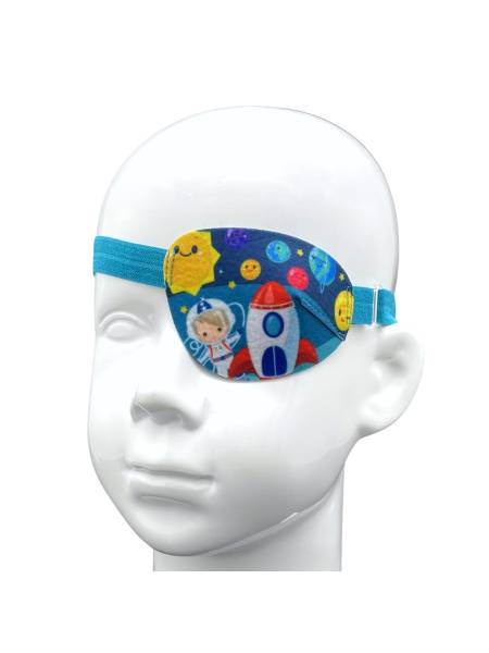 eyeOK's reusable "Cosmonaut & Rocket" eye patch offers comfortable and effective left eye closure for children. This ophthalmologist-approved, hypoallergenic patch features an anatomical design for a secure fit near the nose, works under eyeglasses, and boasts an adjustable strap for a perfect fit. Made from high-tech, 100% hypoallergenic polyester (cotton is not recommended for reusable patches by ophthalmologists), it’s a safe, eco-friendly, and durable solution for pediatric eye care. Available in sizes S (children) and L (teenagers & adults).