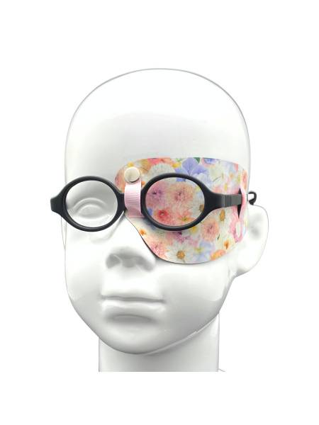The eyeOK Flower Mood 2 anatomical eye patch provides effective and comfortable closure of the left eye. Its universal size and button closure ensure a secure, personalized fit under eyeglasses. Made from hypoallergenic, high-tech 100% polyester (cotton is not ophthalmologist-approved for reusable patches), this reusable eye patch is an eco-friendly and high-quality solution for eye care. For optimal performance, ensure your eyeglasses fit snugly against your brow and cheek, preventing slippage towards the nose. Ophthalmologist approved.