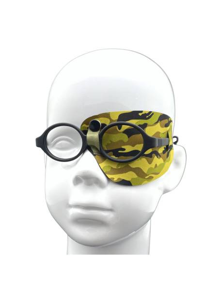 The eyeOK "Military" eye patch offers superior comfort and effectiveness for left-eye occlusion. Its universal size and anatomical design ensure a snug, comfortable fit without pressure points, even when worn under eyeglasses. The khaki camouflage pattern adds a discreet, stylish touch.