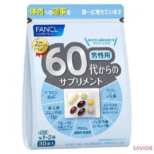 SEO Keywords: FANCL, men's vitamins, vitamins for men over 60, vitamins for men 60+, senior men's health, male vitality supplement, antioxidant supplement, ginkgo biloba, nattokinase, oyster extract, milk thistle, curcumin, chitosan, blood circulation, memory support, liver health, digestion support, anti-aging, 30 day supply, Japanese vitamins, men's health supplements, over 60 supplement.