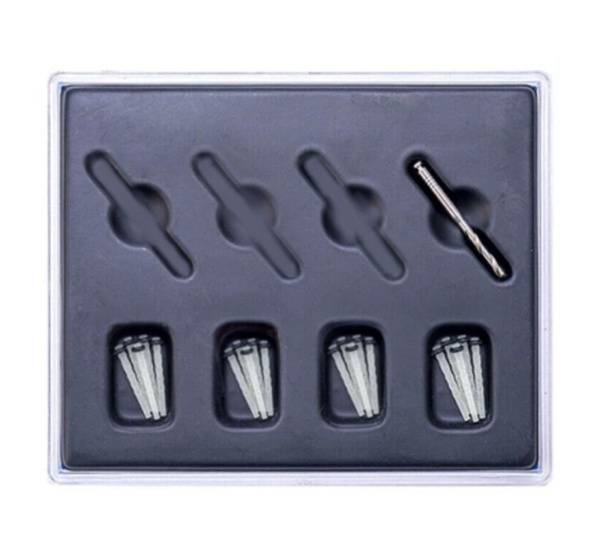 Set of 20 posts + 1 expander. Size #4, 1.8mm (0.18) diameter. Transparent-black color.