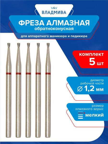 Experience precision with this 5-piece set of fine grit diamond dental burs, featuring a tapered fissure shape and a 1.2mm working diameter. Each bur boasts a 1.6mm working length. These diamond burs, from TD "VladMiVa," are expertly designed for professional dental procedures, including composite work, cavity preparation, enamel shaping, and the meticulous removal of tooth structure.