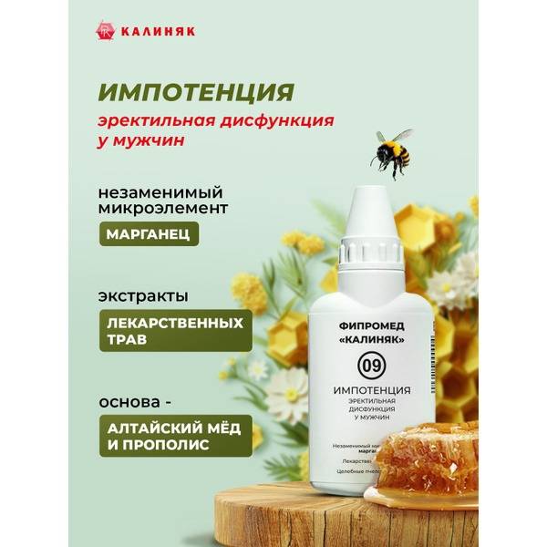 Fipromed #9 is a natural herbal remedy formulated to address erectile dysfunction (ED) and impotence in men. Delicious and effective, this phytopreparation combines medicinal herbs, beneficial bee products, and manganese to provide a safe and effective approach to improving sexual health. The blend of herbs promotes improved circulation and overall well-being, while bee products like propolis offer antioxidant benefits and support immune function. Manganese plays a crucial role in testosterone production, vital for erectile function.