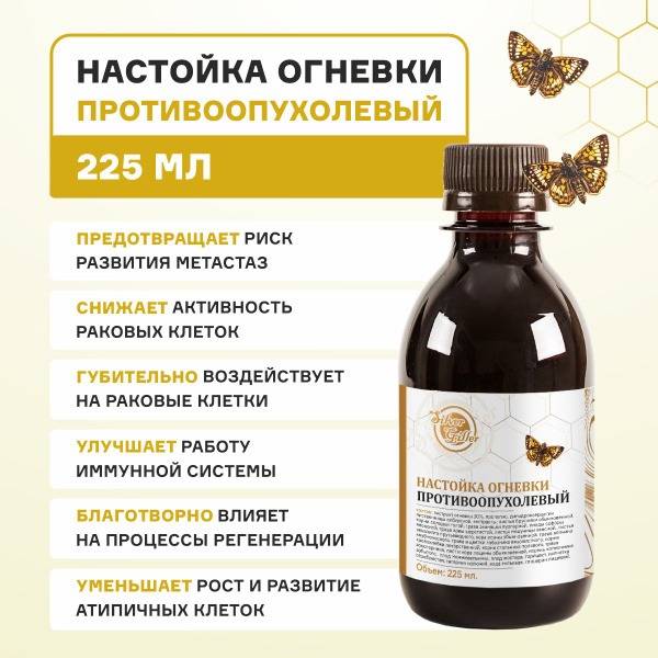 Fire Moth Anti-Tumor Tincture is a potent blend of natural bee products and herbal extracts, offering supportive restorative and health benefits. Based on traditional remedies, this tincture harnesses the power of fire moth (greater wax moth larvae), bee brood, and propolis, enhanced by carefully selected herbs. It targets atypical cells, potentially reducing the risk of metastasis and tumor growth. Its unique formula dissolves the fatty membranes of bacteria and viruses while exhibiting cytotoxic effects on cancerous cells. This tincture aids in cellular regeneration, strengthens the immune system, supports liver function for efficient detoxification, and elevates mood through its serotonergic properties. Flavonoids improve vascular permeability and blood circulation. Used as part of a comprehensive approach, it supports both benign and malignant neoplasm management and prevention.