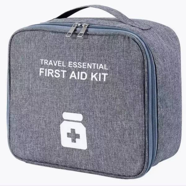 Description: Essential for home and travel, our first-aid kit keeps medications, bandages, and plasters readily accessible. A personal first-aid kit is a must-have for your home, car, or travels. Responsible storage is crucial to keep medications safe from children and protected from moisture and sunlight. Our organizer provides convenient storage at home or on the go. Made from water- and dust-repellent material for easy cleaning, the larger home kit features mesh pockets for small items. The kit boasts convenient compartments to optimize medication storage, with a deep main section accommodating tall glass bottles, and a protective base plate preventing breakage.