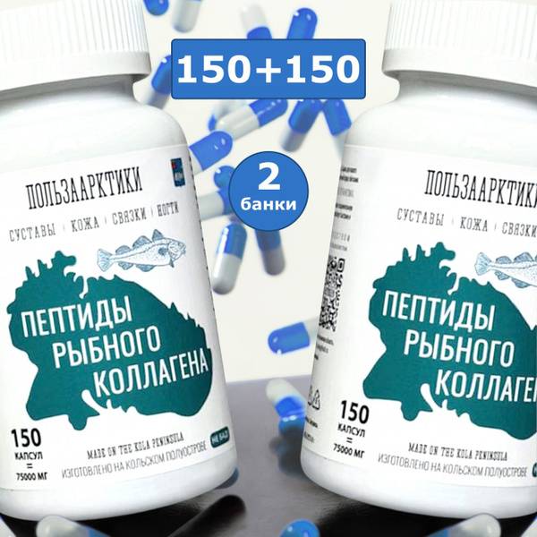 Experience the benefits of our premium Fish Collagen Peptides, a powerful and safe way to support the health of your joints and ligaments. This convenient pack contains 300 easy-to-swallow capsules (two bottles of 150 capsules each), providing a consistent and effective supply of vital collagen peptides derived from fish.
