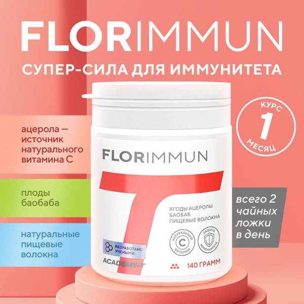 Keywords: FlorImmun, dietary supplement, prebiotic, probiotic, immunity boost, gut health, baobab, acacia gum, fructooligosaccharides (FOS), vitamin C, acerolа, immune support, natural, non-GMO, gut microbiota, dietary fiber, antioxidant, immunomodulatory, bifidobacteria, lactobacilli, digestive health, weight management, healthy gut, intestinal health.