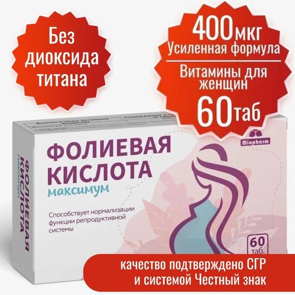 Myopharm Folic Acid Maximum provides a potent 400 mcg dose of Vitamin B9 in a superior formula. Trusted for over 5 years in pharmacies across Russia, Myopharm guarantees high pharmaceutical quality and rigorous production control at every stage. Folic acid is crucial for numerous bodily functions, including metabolism, DNA production, immune cell synthesis, and digestive health. It's especially vital for women of reproductive age, those planning pregnancy, and pregnant women. A 400 mcg daily intake supports healthy placental development, fetal growth, and the prevention of neural tube defects and other birth defects (heart, kidney, cleft palate, etc.). Clinical studies show that taking folic acid during pre-conception planning offers the greatest effectiveness (40-70% reduction in risk). Choose Myopharm Folic Acid Maximum for a reliable and effective way to support your health and the healthy development of your baby.