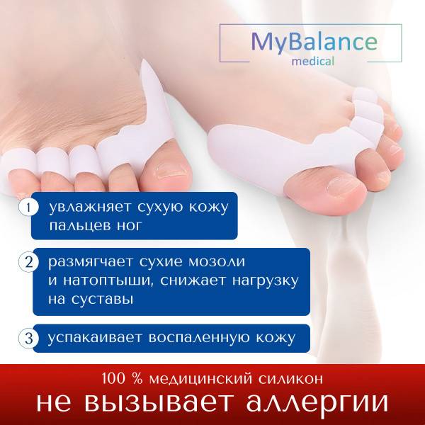 </section> <hr> <section>MyBalance Toe Separators with Big Toe Protection offer effective relief for foot pain caused by bunions (hallux valgus) and toe misalignment. This 2-piece set provides gentle separation and alignment for your toes using premium, hypoallergenic silicone. The specially designed big toe protector shields the joint, reducing pressure and alleviating pain associated with bunion deformities. Prevent corns and chafing with these soft, comfortable foot inserts that enhance walking comfort and reduce foot fatigue. MyBalance toe spreaders are universally sized and designed to fit discreetly in all types of shoes, including everyday, sports, and dress footwear. They serve as an excellent bunion splint alternative and aid in the gradual reduction of foot deformities. Trust MyBalance for quality orthopedic products that promote foot health and beautiful comfort! Discover our collection of foot care solutions for a healthier, more comfortable you.