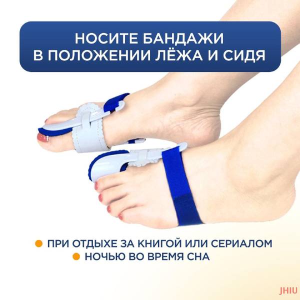 It is important to use this big toe valgus corrector exclusively at night to ensure firm joint fixation during sleep. Soft foam inserts act as protective pads, providing comfortable wear. The adjustable position of the "bunion" pad allows each user to individually customize the toe brace for their foot.