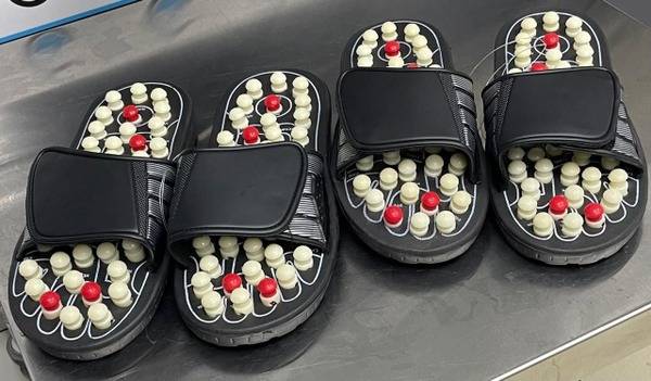 Indulge your feet with our luxurious massage slippers, designed for ultimate comfort and therapeutic benefits. These expertly crafted slippers (sizes 39-41) combine mechanical and reflexology massage techniques to provide a deep, invigorating experience that targets key pressure points in your feet.