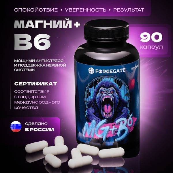 Keywords: Magnesium citrate, vitamin B6, magnesium supplement, nervous system support, muscle health, stress relief, anxiety relief, cardiovascular health, immune support, bone health, blood sugar control, joint pain relief, athletic performance, sleep improvement, high quality, safe, effective, no gastrointestinal side effects, certified product, GOST R ISO 22000-2019, ForceGate.