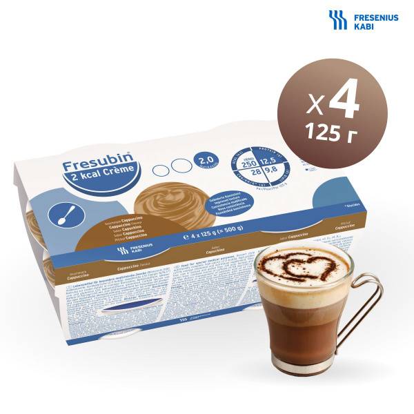 Fresubin 2kcal Cappuccino Cream is a specialized medical food for enteral nutrition, providing a convenient and delicious way to manage nutritional needs. Each pack contains 125g and provides 250kcal. (Pack of 4)