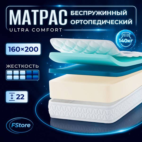 Description: Experience ultimate comfort with the FStore Ultra Comfort 160x200cm foam mattress. This orthopedic and anatomical mattress provides superior support and pressure relief for a restful night's sleep. Enjoy superior comfort and support without the need for springs.