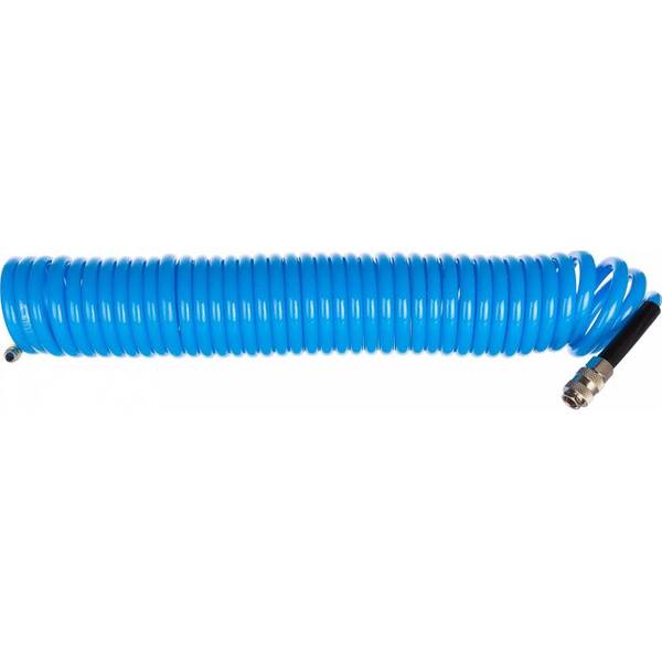 The FUBAG 170301 spiral air hose extends the reach between your compressor and pneumatic tools. Made from durable polyurethane, its 10-meter length provides ample working distance. Equipped with quick-connect fittings for easy and efficient setup, this hose is ideal for various applications. Note: Product appearance and/or specifications may be subject to change by the manufacturer.