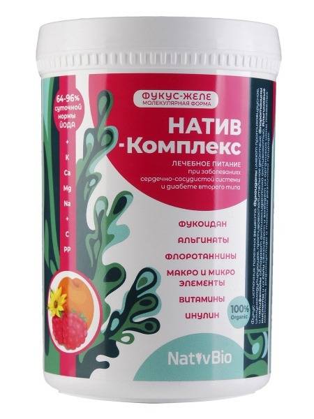 NativBio, Native Complex, Fucus seaweed, therapeutic nutrition, cardiovascular health, metabolic support, blood sugar regulation, celiac disease, iodine, fucoidan, alginate, enterosorbent, antioxidants, chromium, selenium, zinc, weight management, gut health, immune support, thyroid health, functional food, natural supplement, ready-to-eat gel, no preservatives, no artificial colors, no artificial flavors.