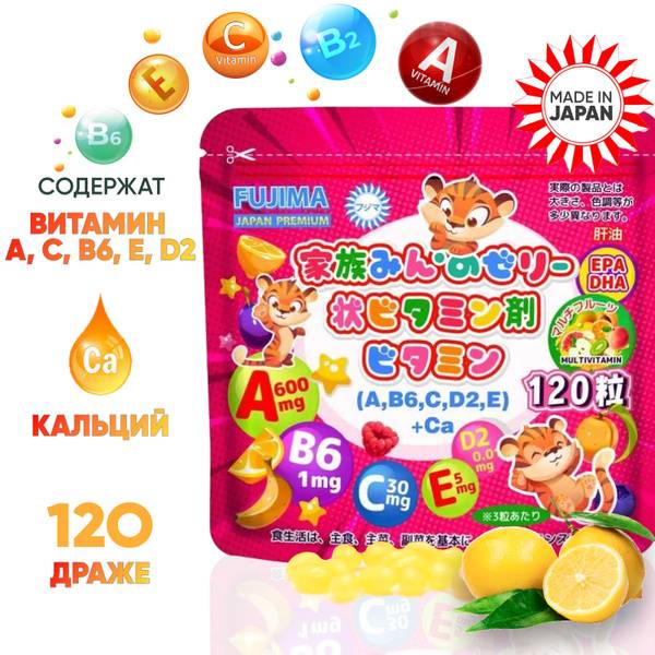 Fujima Children's Multivitamins offer a comprehensive blend of essential nutrients to support your child's healthy growth and development. These delicious citrus-flavored chewable tablets are specially formulated to meet the unique needs of growing children. Each tablet delivers a powerful combination of: